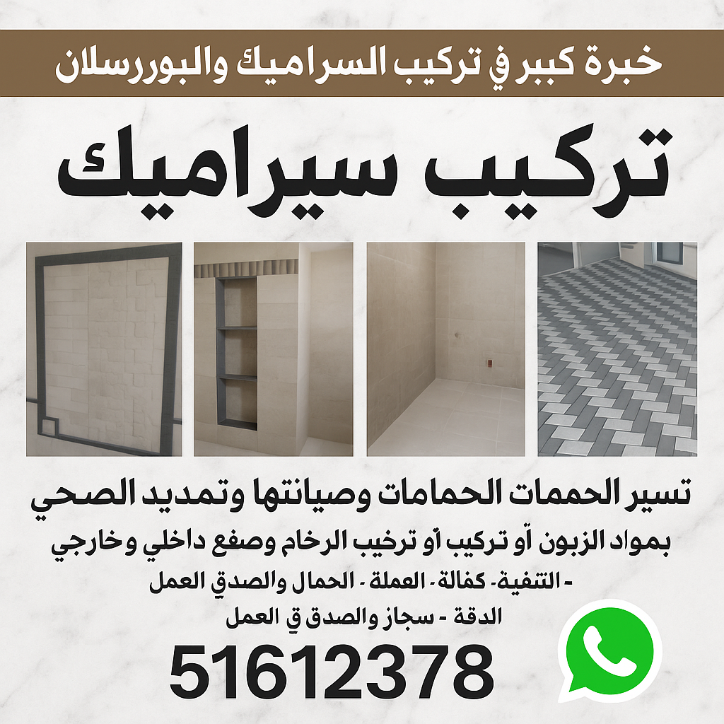 واتس اخضر مقاول سيراميك - معلم سيراميك - تركيب سيراميك - بالكويت📞51612378 - معلم سيراميك رخيص - تركيب سيراميك باكستاني - تركيب السيراميك - فني سيراميك - معلم سيراميك باكستاني